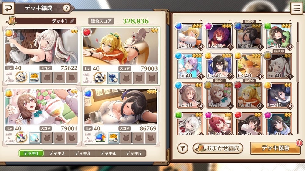 集めたキャラクターカードを編成してパズルに挑もう!カードを育てるとパズル攻略もどんどん有利に!