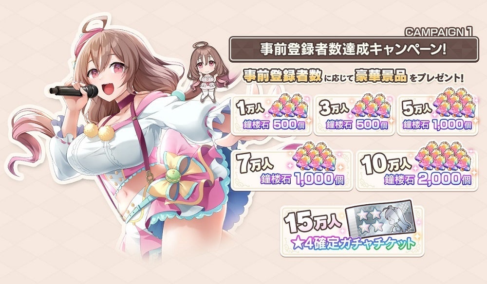 さらに15万人まで到達した場合、最高レアリティである★4のキャラクターが確定する★4確定ガチャチケットも獲得できます!