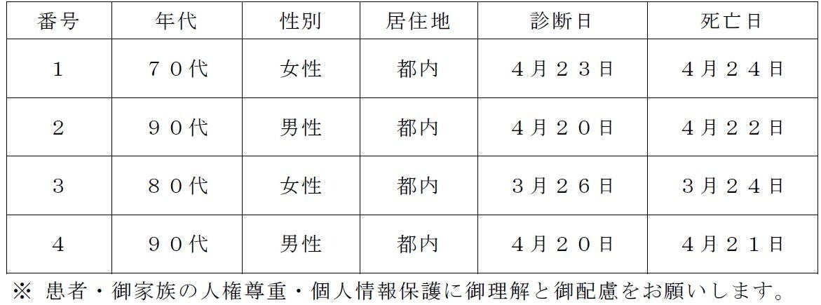 都内で新型コロナウイルスに感染した方が死亡されましたのでお知らせします。