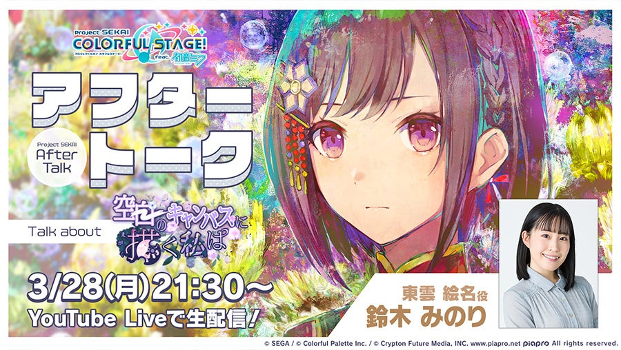 「空白のキャンバスに描く私は編」では東雲絵名役の鈴木みのりさんが出演いたします。