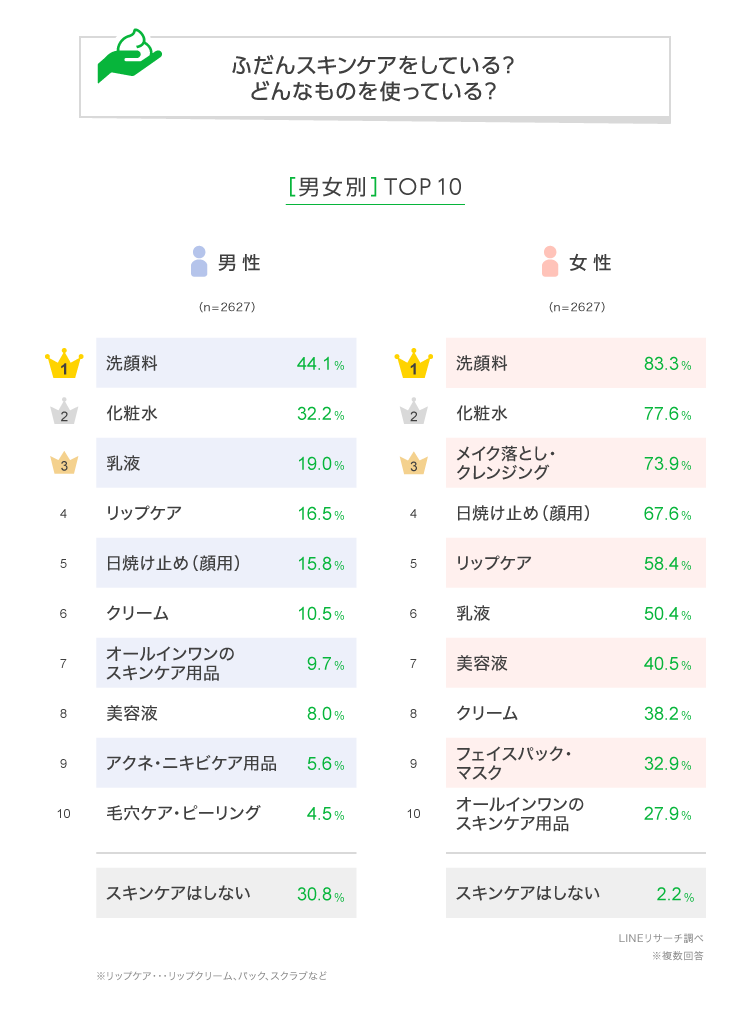 LINEリサーチ、全国の男女を対象に「スキンケア」に関する調査を実施