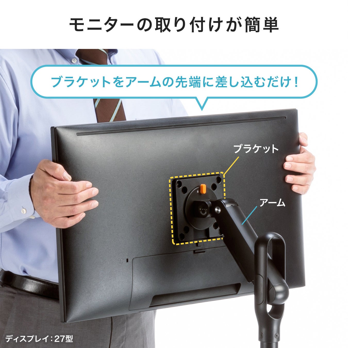 モニターにブラケットを取り付けてからホルダーに差し込む仕様で、簡単にモニターを取り付けできます。
