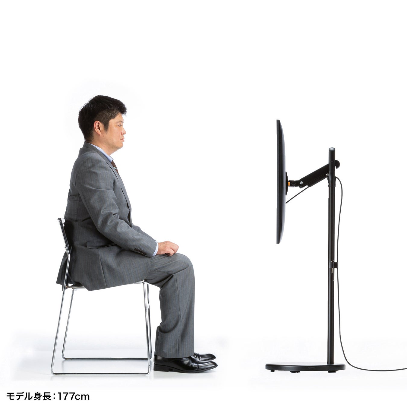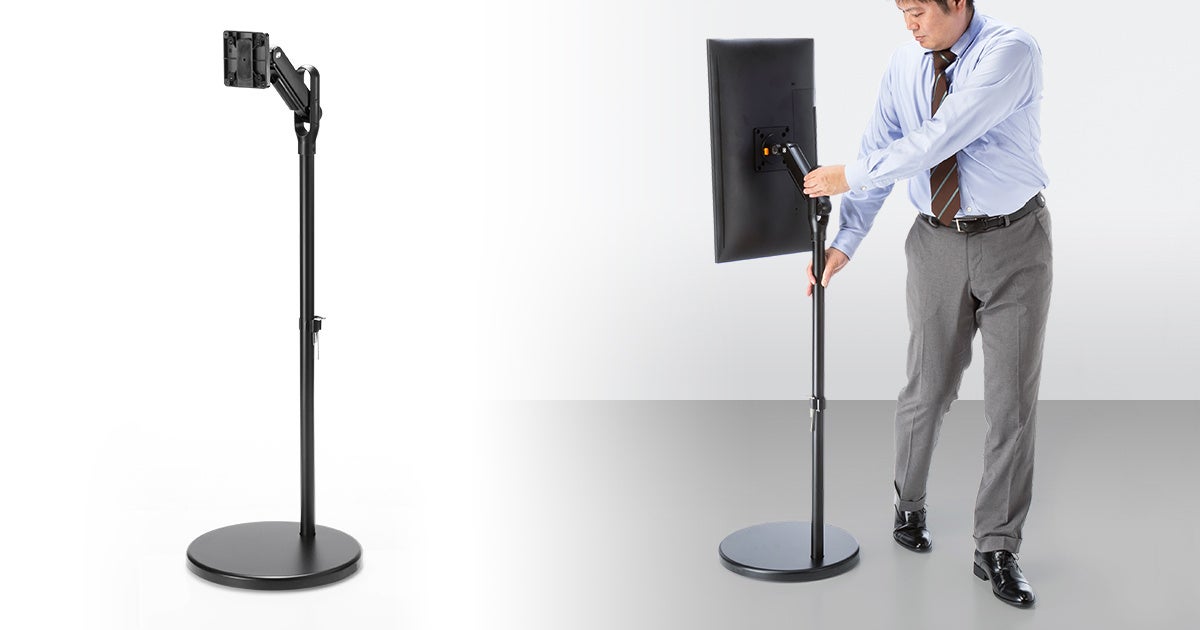 アーム部は上下に動かして高さを調整できるので、立っても座っても見やすい位置に画面を設置できます。