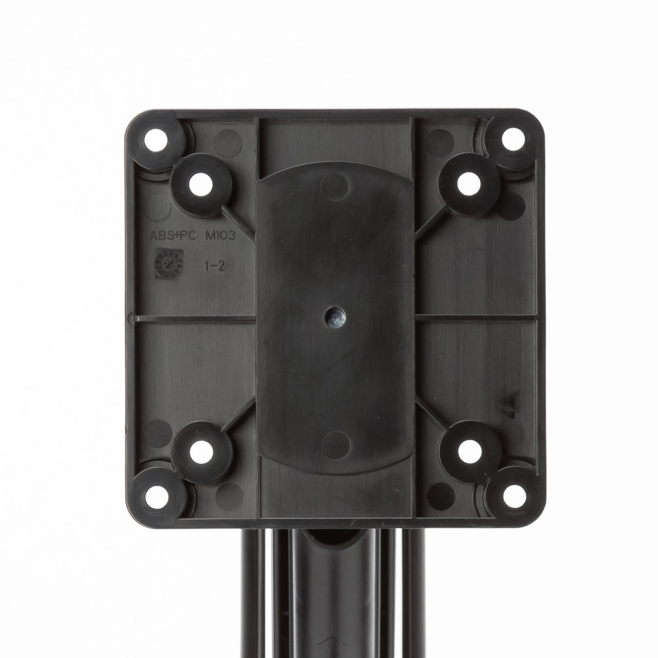 台座には5つの低床キャスターが付いています。 一般的なキャスターよりも床からの高さが抑えられて重心が低くなるため、安定性が向上しスムーズに移動できます。また、キャスターが目立ちにくく見た目も美しいため、デザイン重視の映像の表示・場所にも適しています。