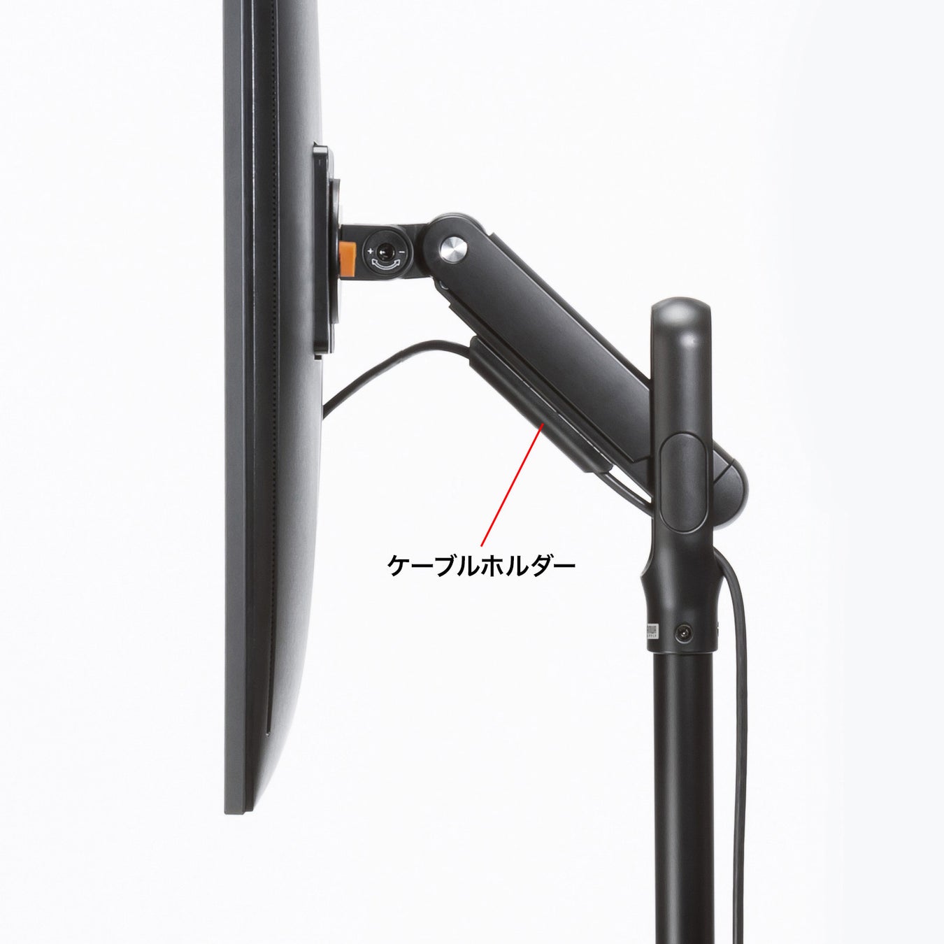 アーム部とポールに、ケーブルをキレイに配線できるホルダーとクリップが付いています。