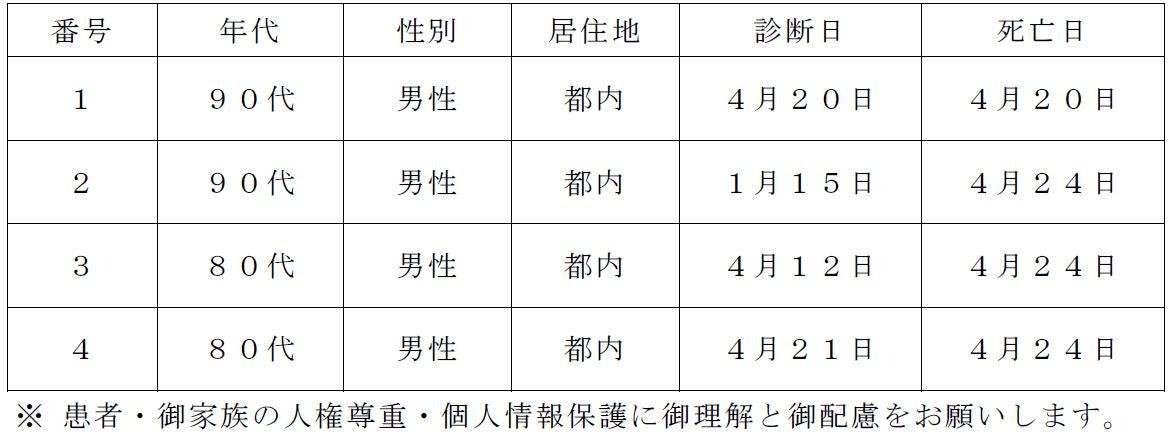 都内で新型コロナウイルスに感染した方が死亡されましたのでお知らせします。