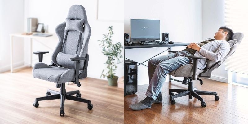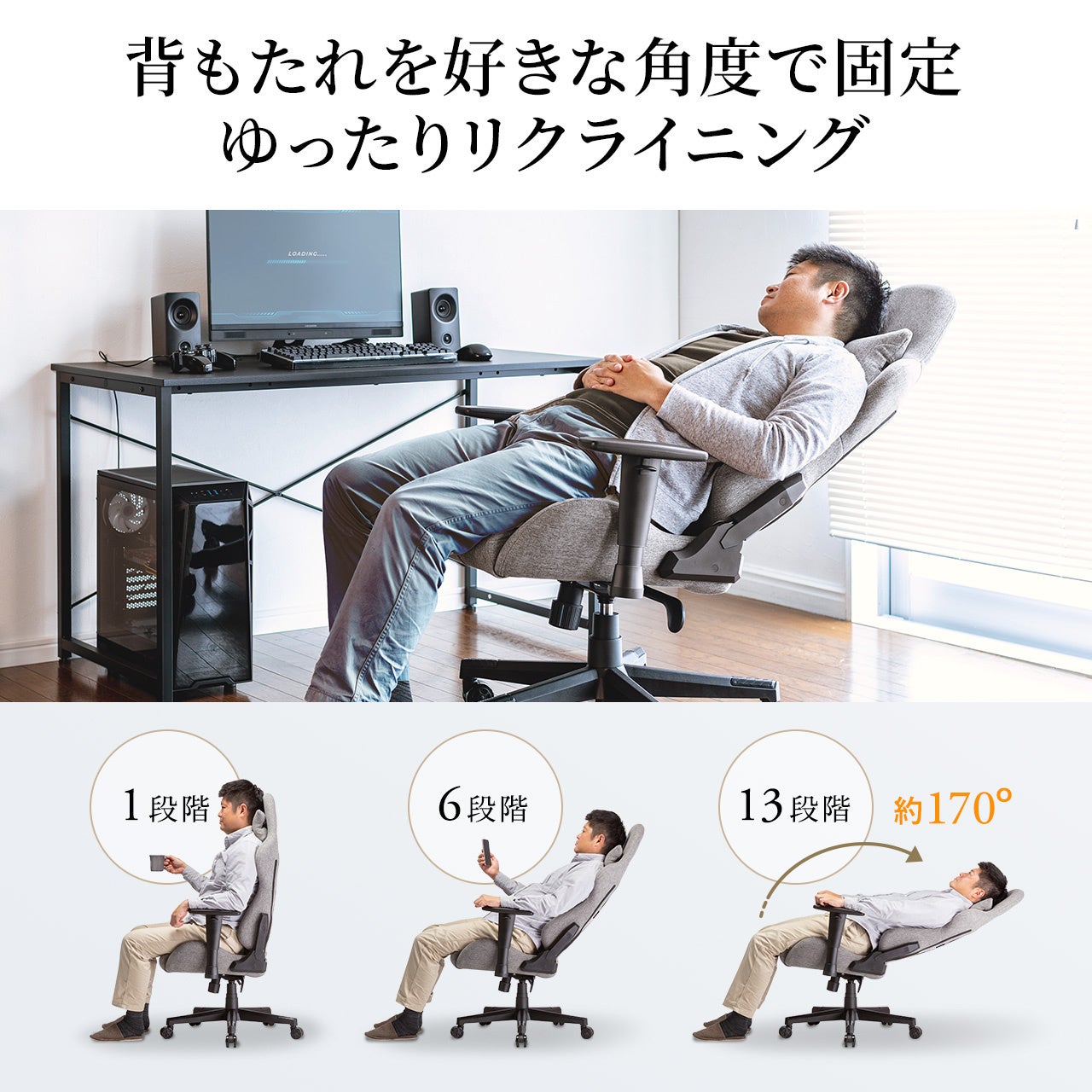 ファブリックチェア ゲーミングチェア リクライニング 前傾機能付き ハイバック モールドウレタン アームレスト ヘッドレスト ランバーサポート グレー