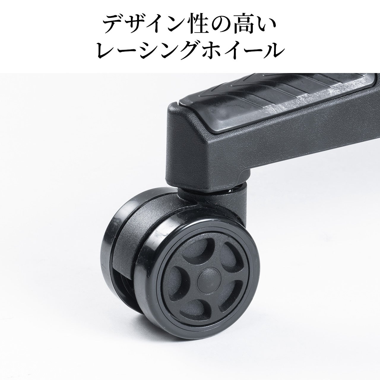 レーシングホイールをイメージした、直径6cmの大型ウレタンキャスターを装備しています。
