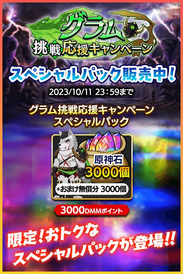 また、原神石がおトクに入手できる「グラム挑戦応援キャンペーンスペシャルパック」も同時に登場!
