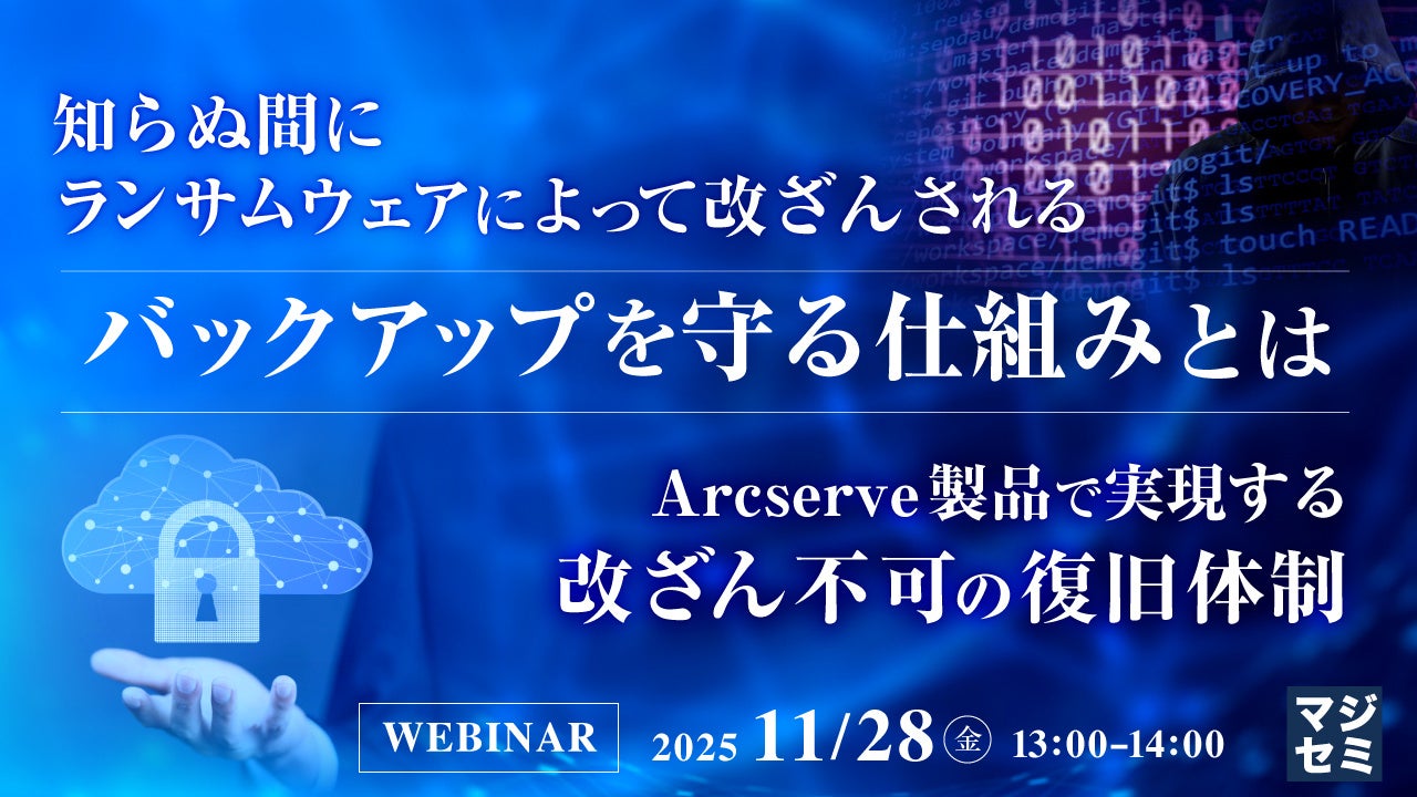 マジセミ株式会社は「知らぬ間にランサムウェアによって改ざんされるバックアップを守る仕組みとは」というテーマのウェビナーを開催します。