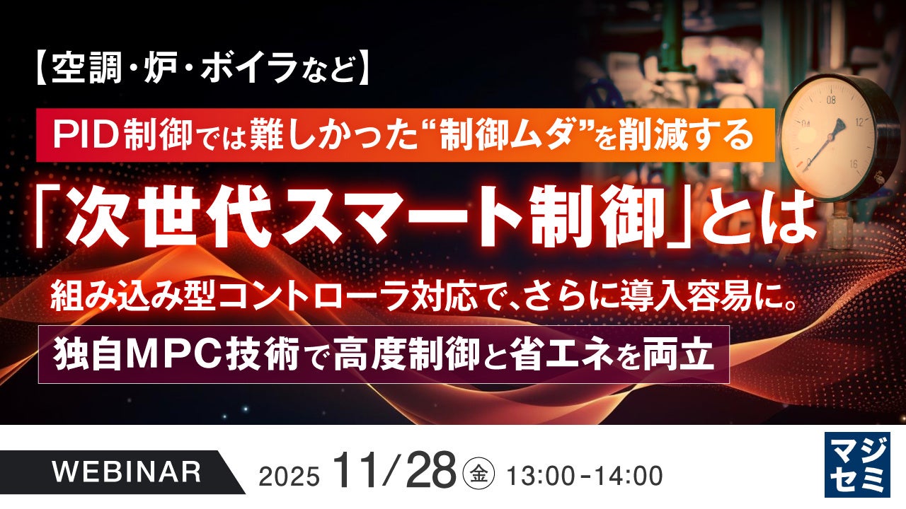 マジセミ株式会社は「【空調・炉・ボイラなど】PID制御では難しかった“制御ムダ”を削減する「次世代スマート制御」とは」というテーマのウェビナーを開催します。