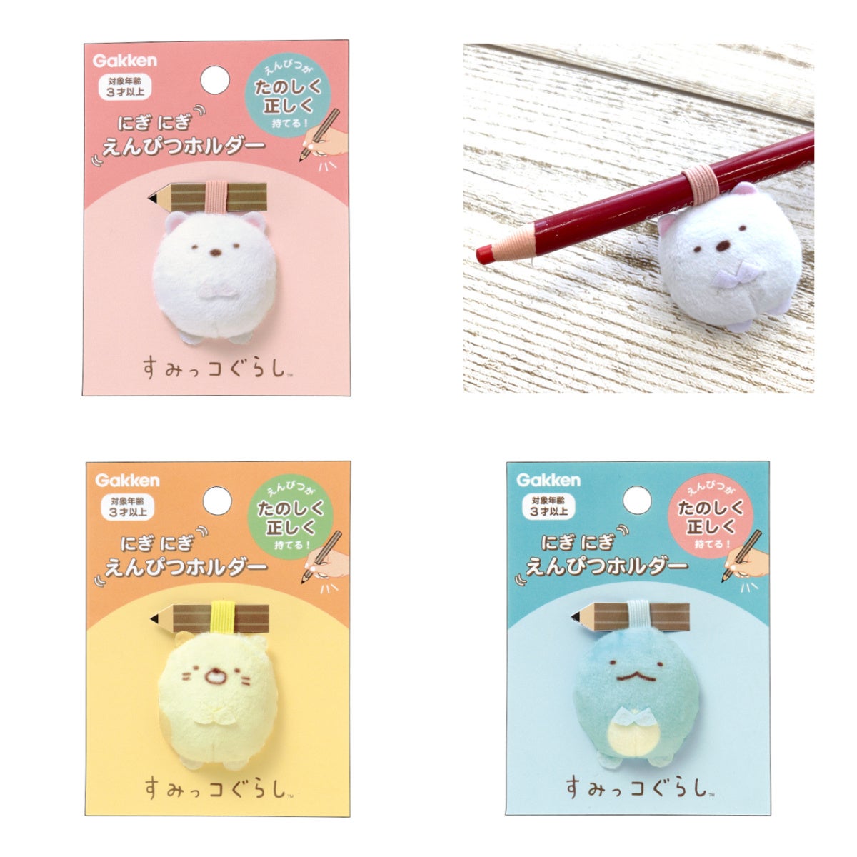 ホルダーに付いているマスコットを握ることで、手に余計な力を入れずに正しく書くことができる鉛筆ホルダー。