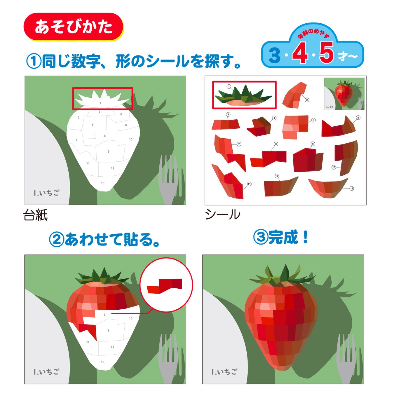 台紙と同じ番号のシールを見つけて貼るだけで、パズルが完成します。