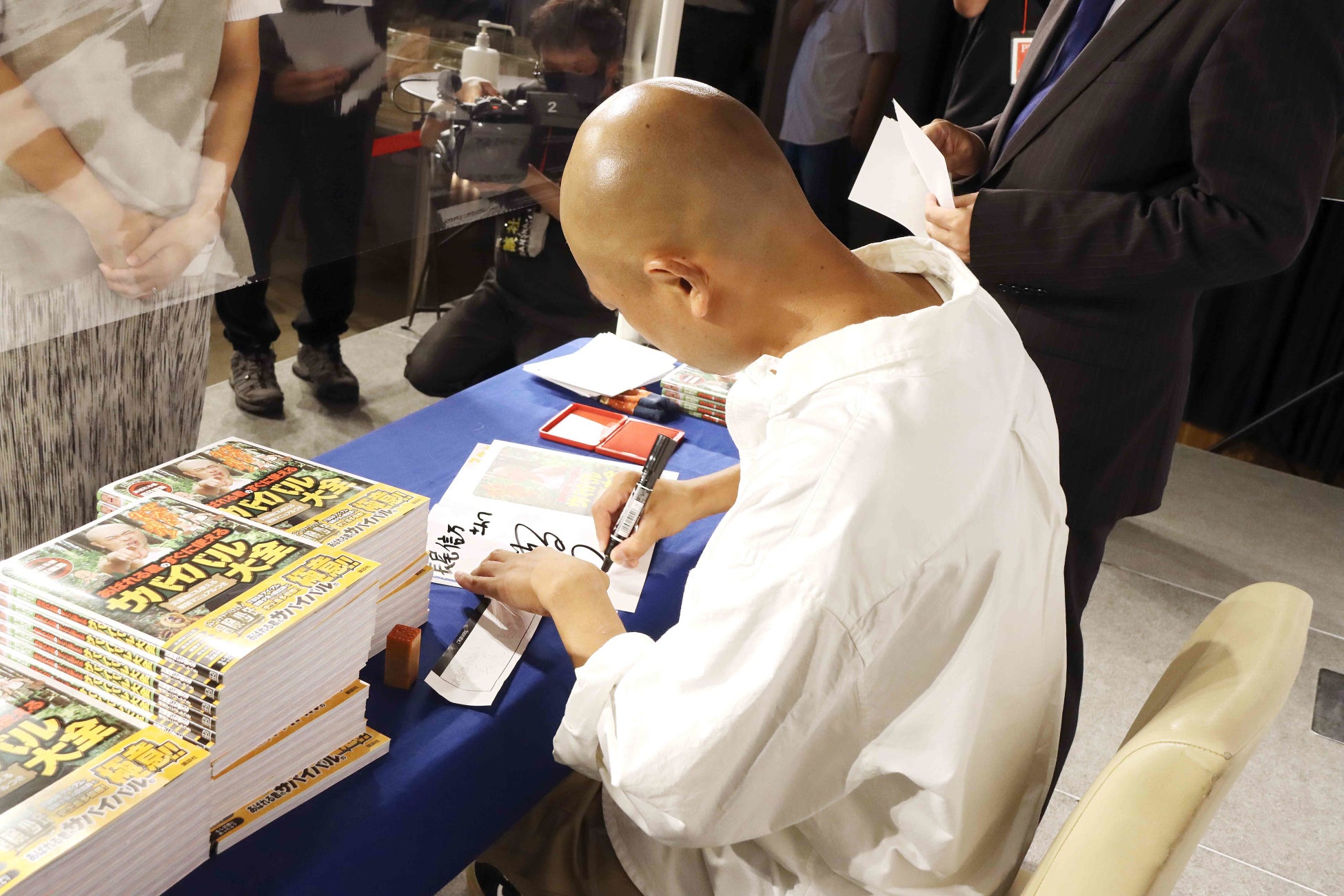 TBS系「冒険少年」で人気のあばれる君の初の著書『ぜったいに生き残れ! あばれる君の すぐに使えるサバイバル大全』 発売記念イベントが8月10日にSHIBUYA TSUTAYAで開催され、約100人の読者にむけてその場でサインをし、2ショット撮影などが行われました。