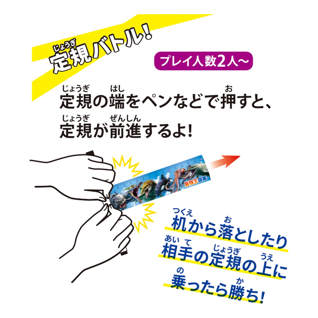 定規でもバトル!定規の端をペンなどで押すと、定規が前進します。