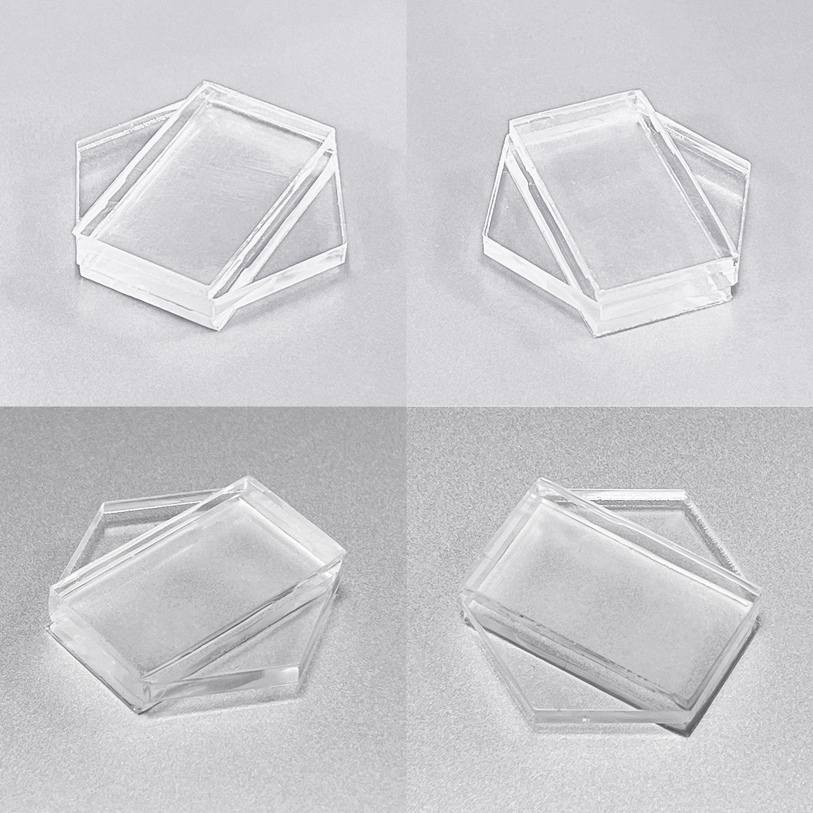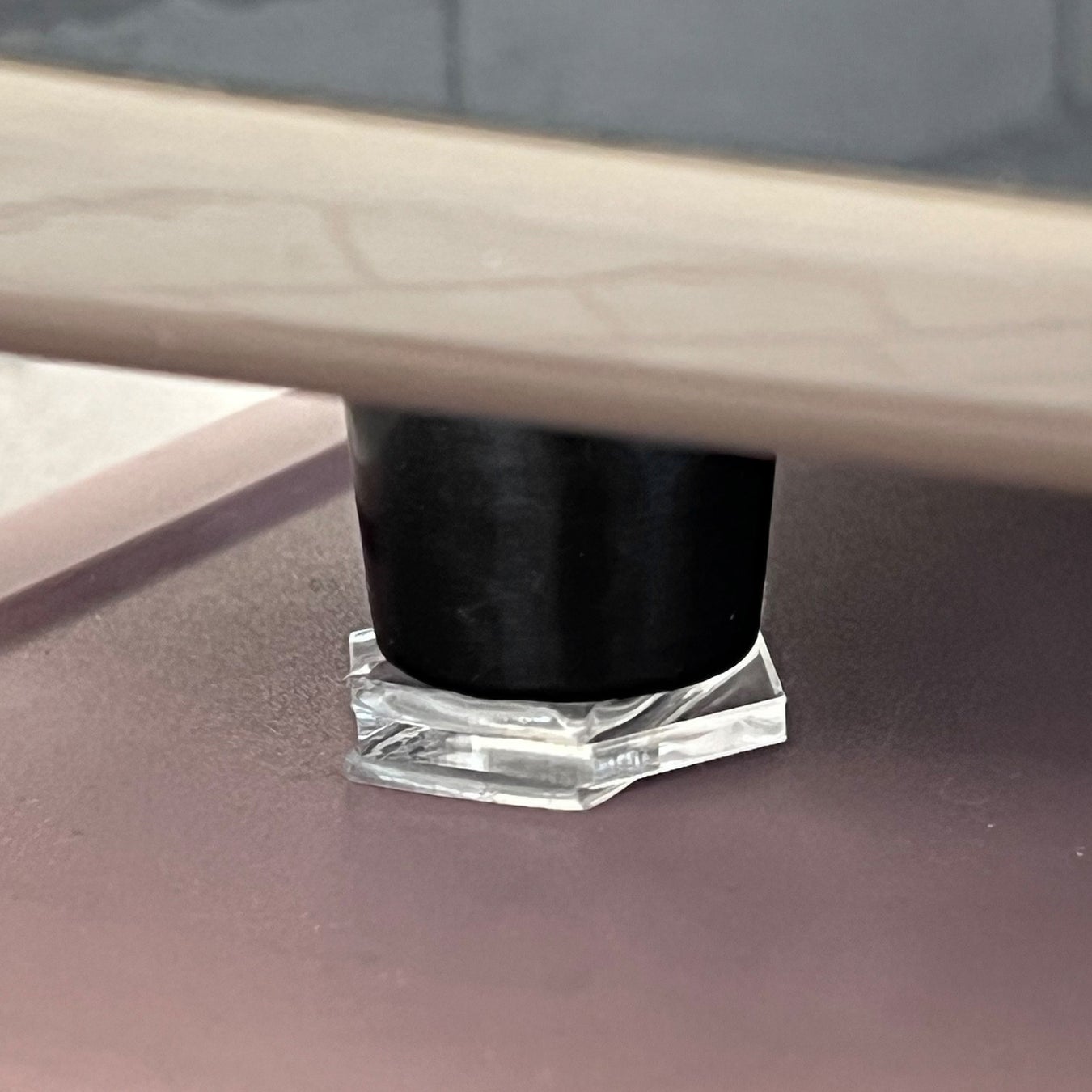 四角形の粘着剤の間に六角形のアクリル板が入っており、自重で潰れにくくなっています。縦方向に立てて固定しても歪んだりしません。