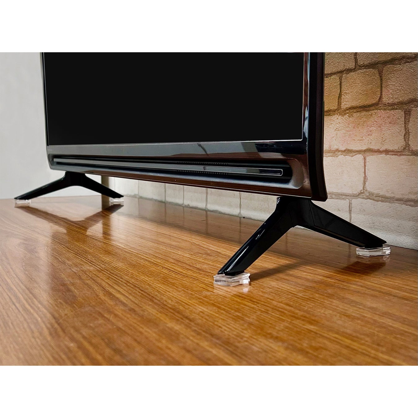 最近のテレビの台座は接地面が非常に狭くなり、耐震ゴムが貼りにくくなっています。