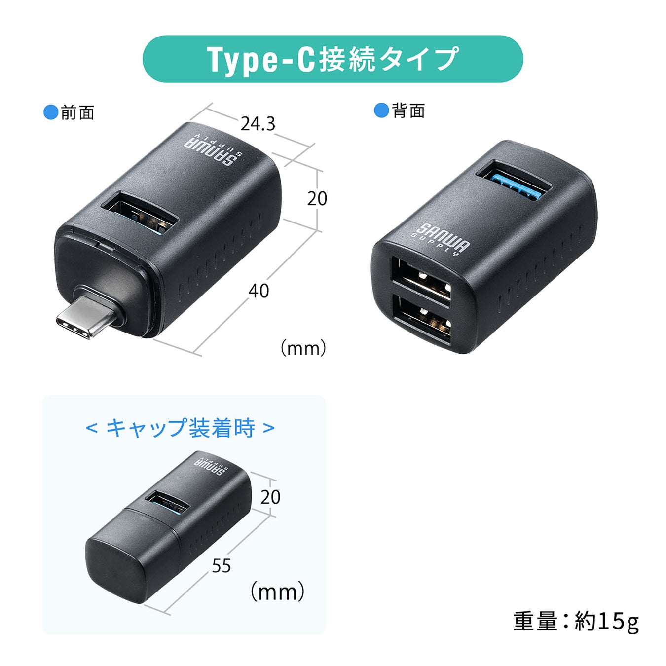 USBハブ コンパクト 小型 Type-C 3ポート USB3.0/USB2.0コンボハブ 黒色 軽量