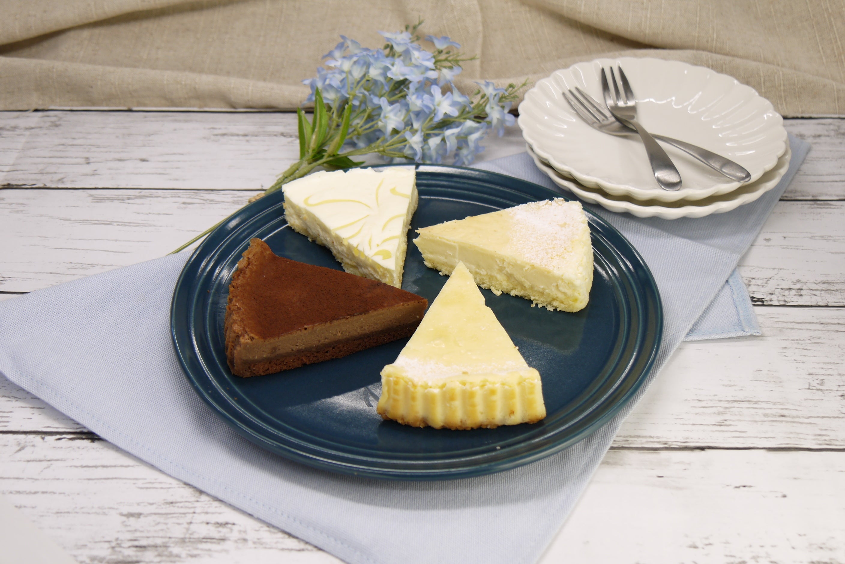 しっかり焼き上げた濃厚チョコチーズケーキ、小さいながらもしっとりとした味わいのNYチーズケーキ、爽やかな酸味となめらかな口当たりの瀬戸内レモンのレアチーズ、濃厚チーズが特徴のベイクドチーズケーキ、バラエティーに富んだアソート商品です。