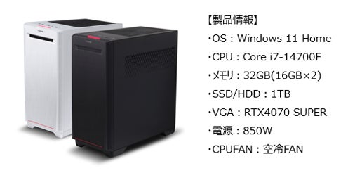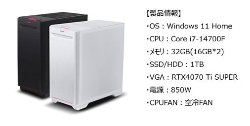 インテル Core i7-14700FとGeForce RTX 4070 Ti SUPERを搭載。