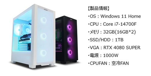 インテル Core i7-14700FとGeForce RTX 4080 SUPER 16GBを搭載。