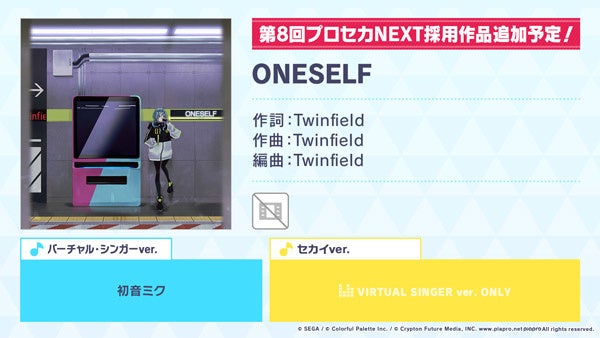 新たなリズムゲーム楽曲として、「ONESELF」(作詞・作曲:Twinfield)の追加が決定いたしました。本楽曲は、「一緒に作ろう!第8回楽曲コンテストプロセカNEXT」の採用曲です。