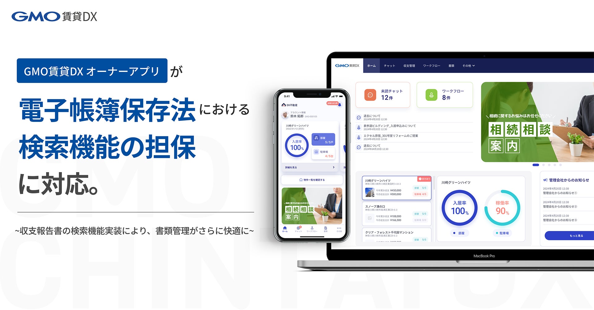 「GMO賃貸DX オーナーアプリ」が電子帳簿保存法における「検索機能の担保」に対応【GMO ReTech】