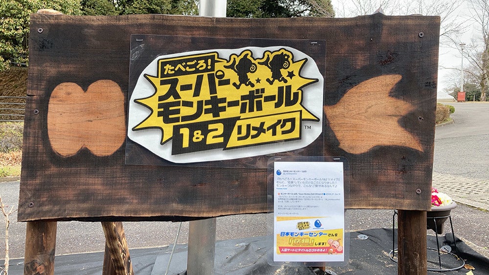 「日本モンキーセンター」では約1年間、『たべごろ!スーパーモンキーボール 1&2リメイク』のタイトルロゴを入園ゲートで掲示していますので、「日本モンキーセンター」へお越しの際は入園ゲートにもぜひご注目ください!