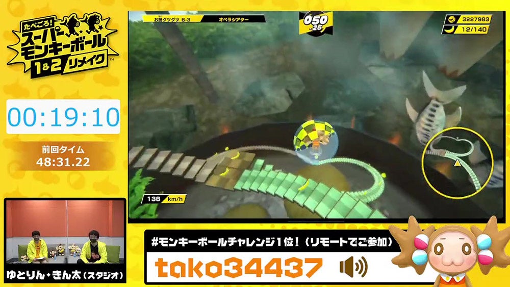 『たべごろ!スーパーモンキーボール 1&2リメイク』ストーリーモード最速クリアを目指す公式生放送でRTA走者tako34437さんが“37分50秒”でクリアし記録を更新!