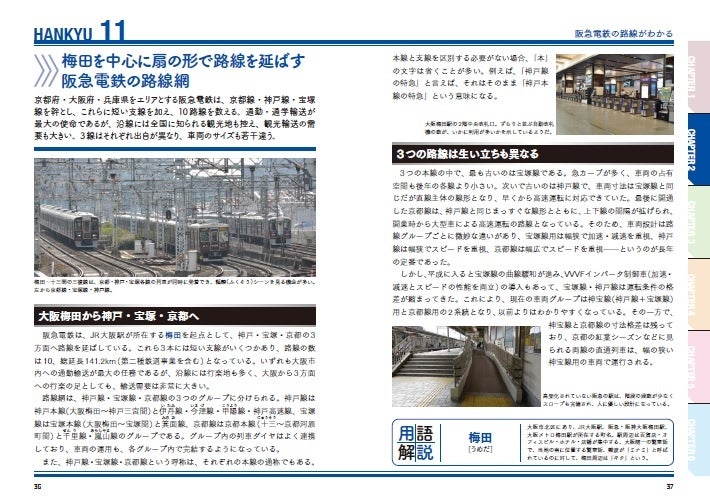 阪急電鉄の駅のなかから、ターミナル駅や分岐駅などの主要駅を取り上げています。駅の構造はもちろん、開業のいきさつや、現在に至るまでの駅やその周辺の変化など、詳しく解説。2021年に駅ビルがリニューアルした神戸三宮駅や淡路駅の改良工事など最新情報も紹介しています。