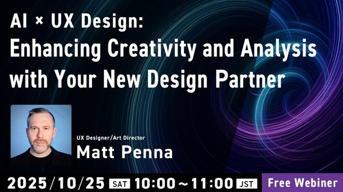 株式会社クリーク・アンド・リバー社(C&R社)は10月25日(土)、UXデザインにAIを活用したいデザイナーの方などを対象に、無料のオンラインセミナー「UXデザイナーMatt Pennaと学ぶ AI×UXデザイン最前線 ~創造性と分析力を高める“相棒”としてのAI活用術~」を開催します。なお、本セミナーは、全編英語で行いますが、同時通訳を通して日本語でお聞きいただくことも可能です。
