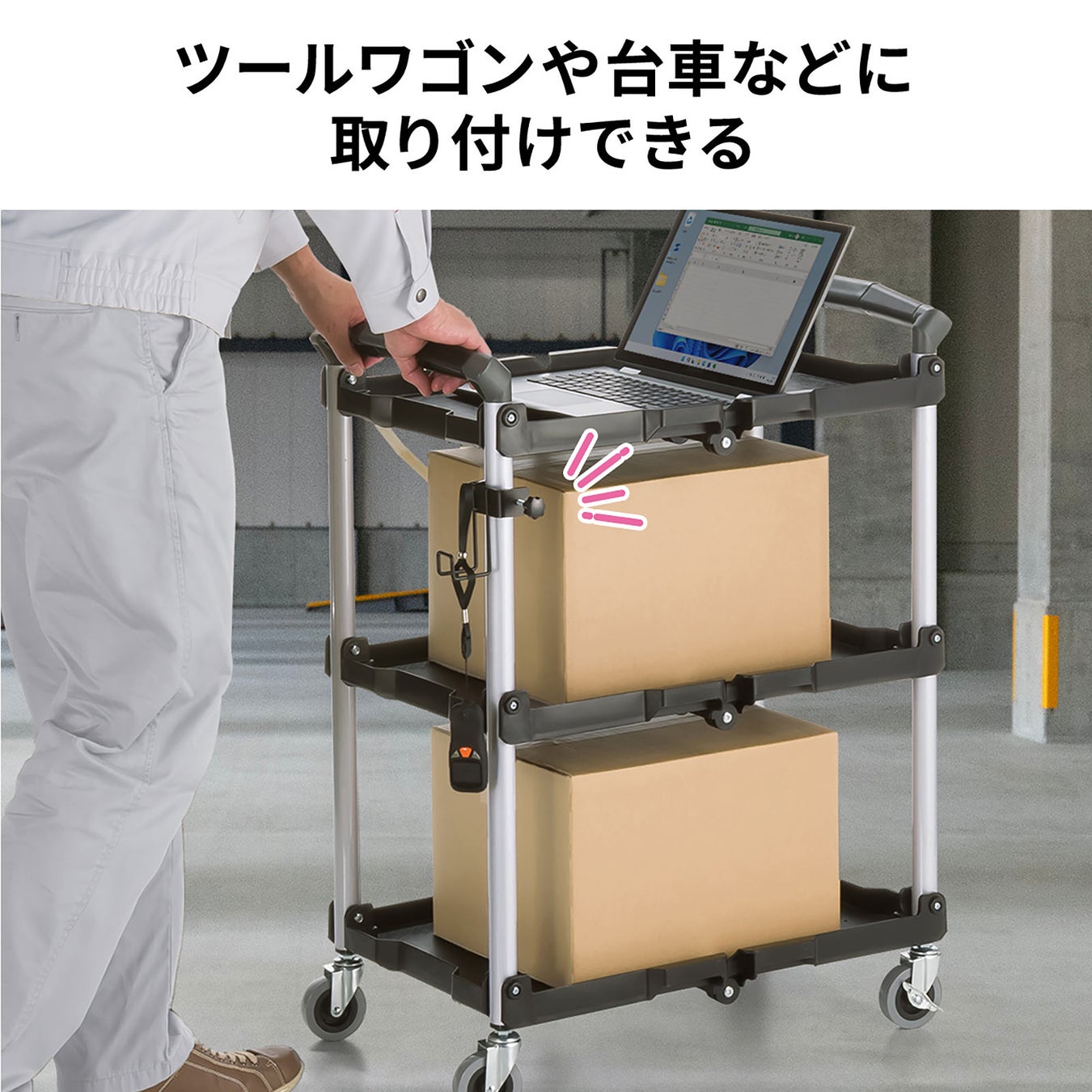 台車やスタンドの支柱部分に取り付けて、ケーブルやバーコードリーダーの設置に最適です。