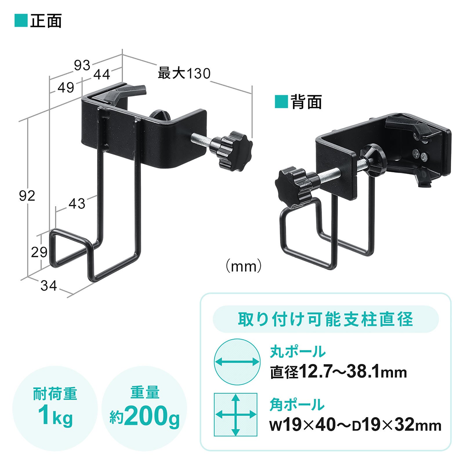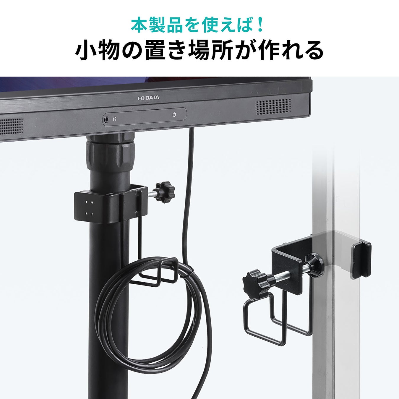 フック クランプ式 収納 丸パイプ 角パイプ テレビスタンド ツールワゴン 台車 ケーブル バーコードリーダー ヘッドセット タップ 簡単取り付け