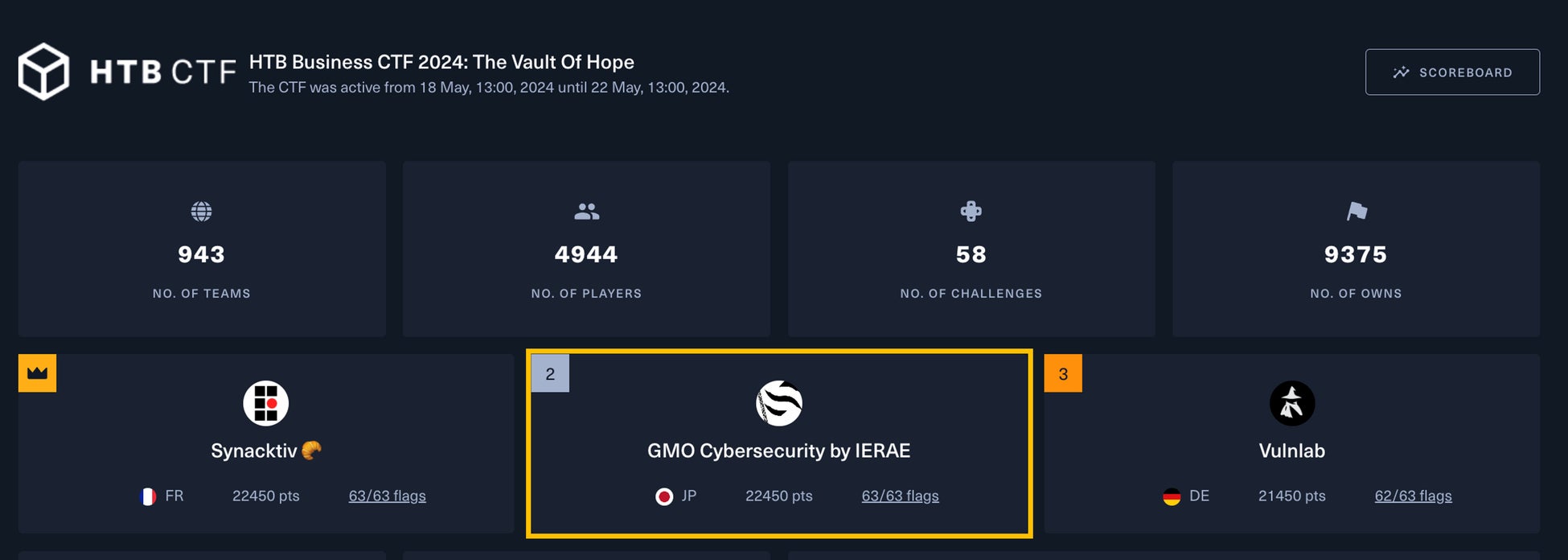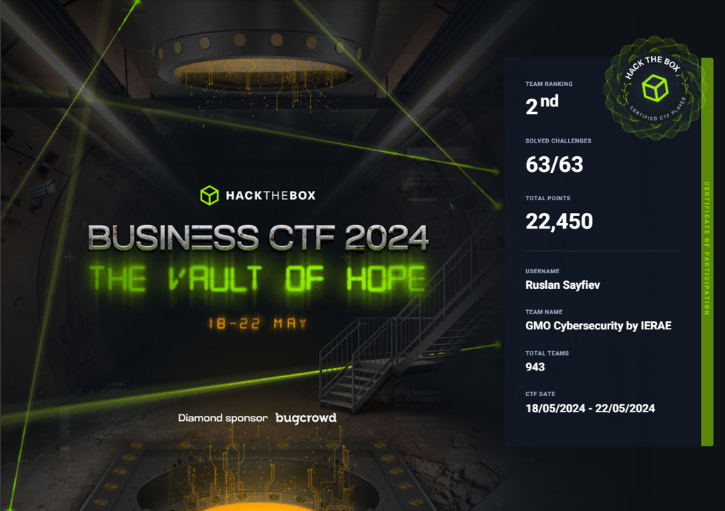 「GMOイエラエ」、セキュリティコンテスト「HTB Business CTF」で国内1位を獲得