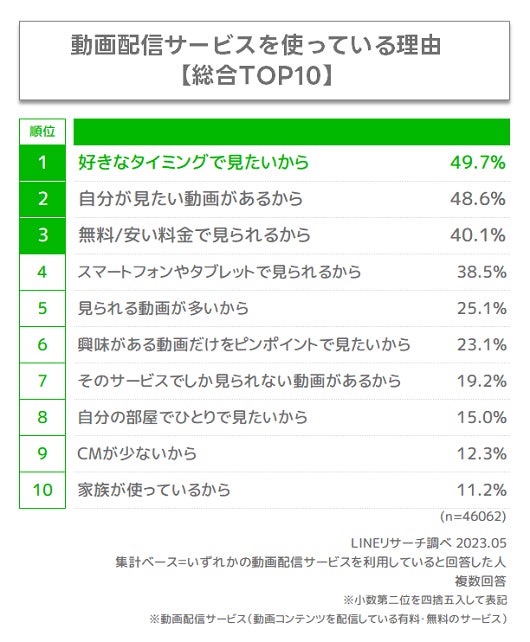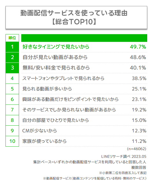 LINEリサーチ、全国の男女を対象に「動画配信サービス」に関する調査を実施