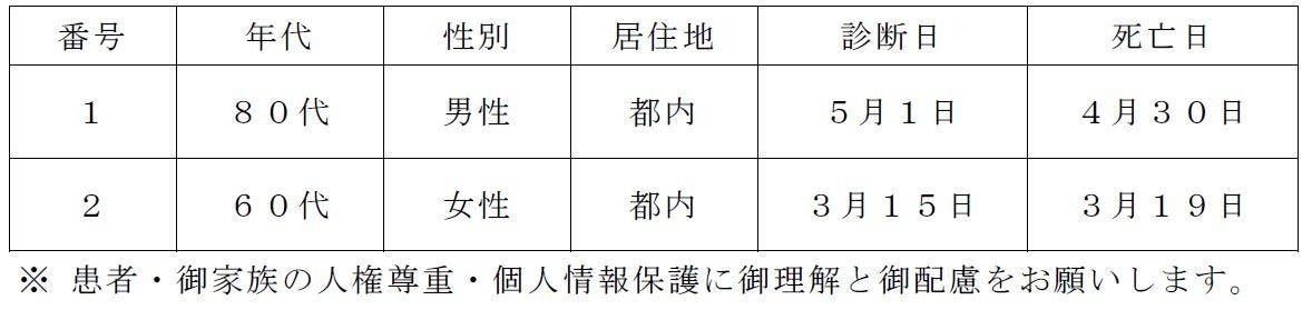 都内で新型コロナウイルスに感染した方が死亡されましたのでお知らせします。
