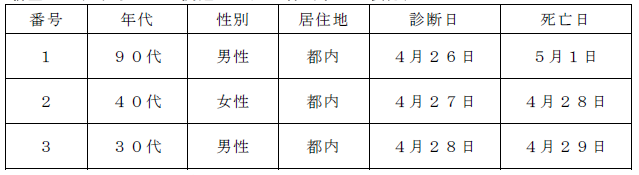 都内で新型コロナウイルスに感染した方が死亡されましたのでお知らせします。