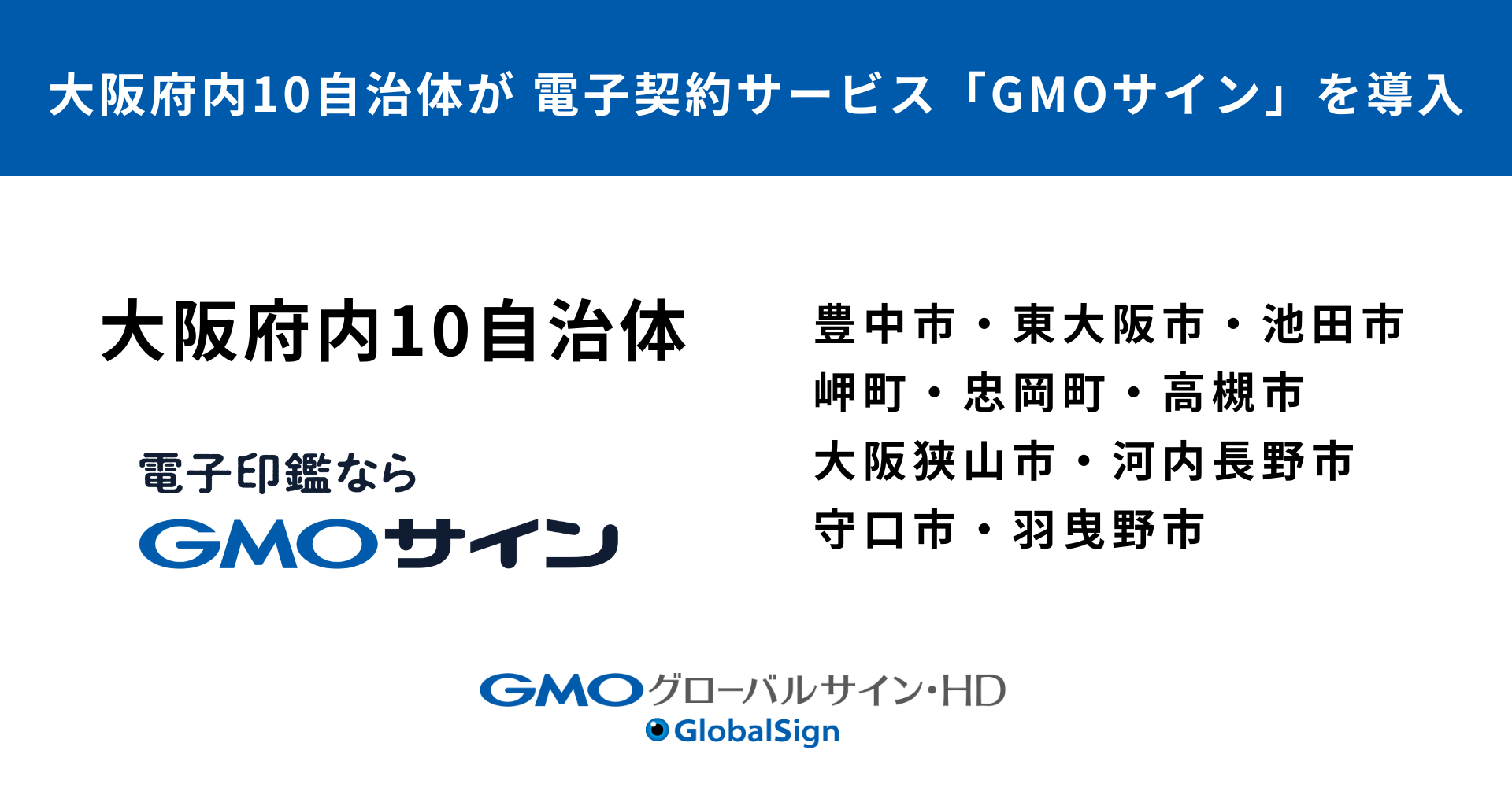新たに大阪府内10自治体が電子契約サービス「GMOサイン」の導入を決定【GMOグローバルサイン・HD】