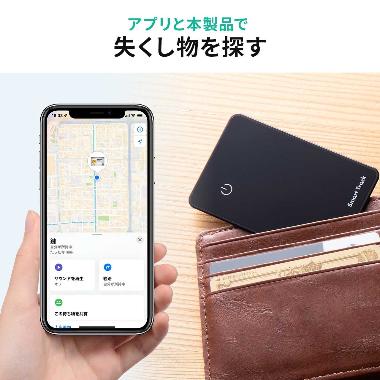 紛失防止カード スマートトラッカー 薄型 財布 探す対応 iPhone ブラック