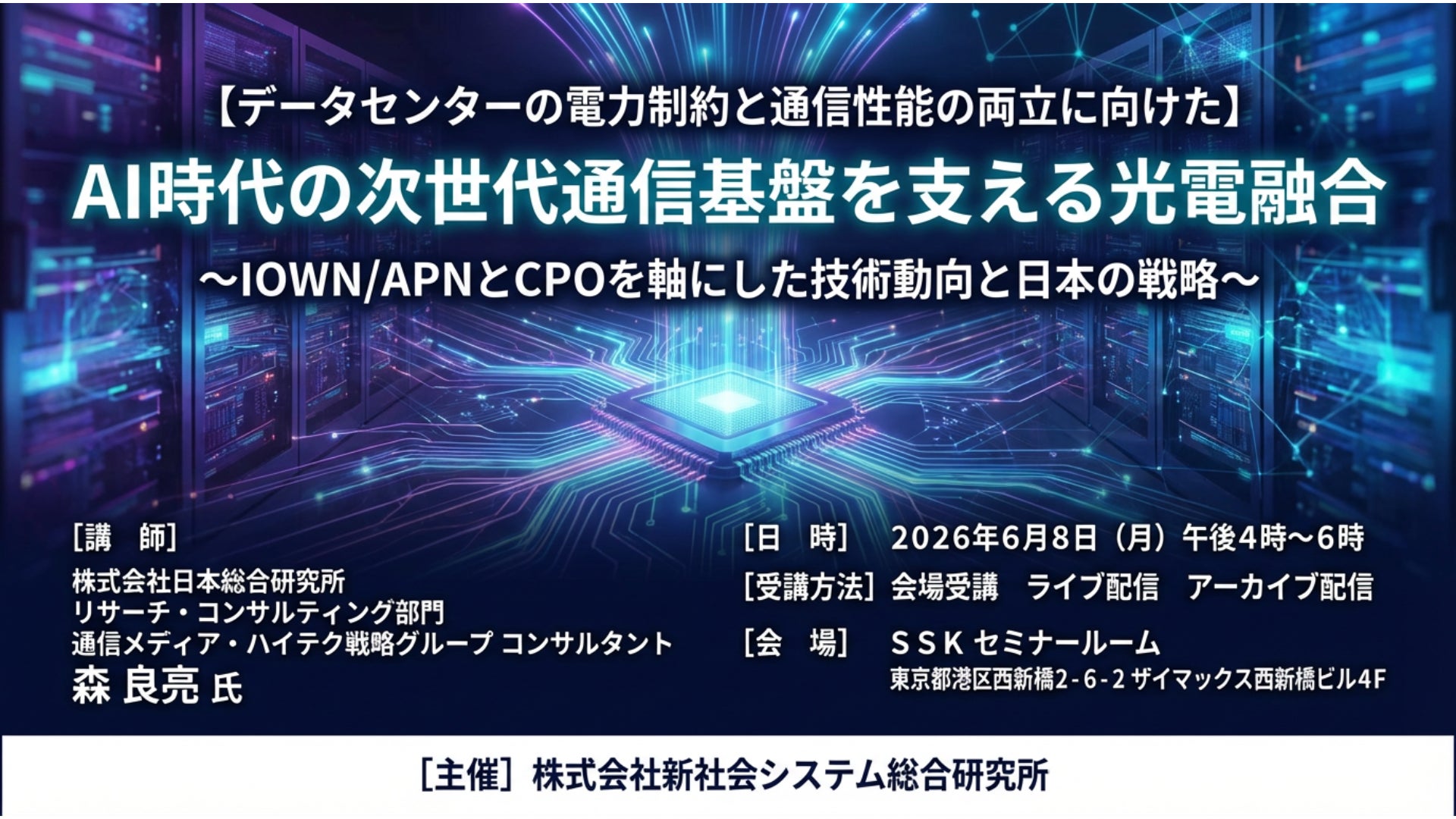 「AI時代の次世代通信基盤を支える光電融合」と題して、株式会社日本総合研究所 森 良亮氏によるセミナーを2026年6月8日(月)に開催!!