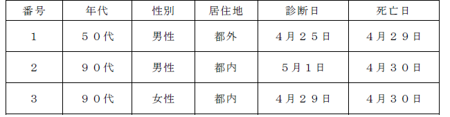 都内で新型コロナウイルスに感染した方が死亡されましたのでお知らせします。