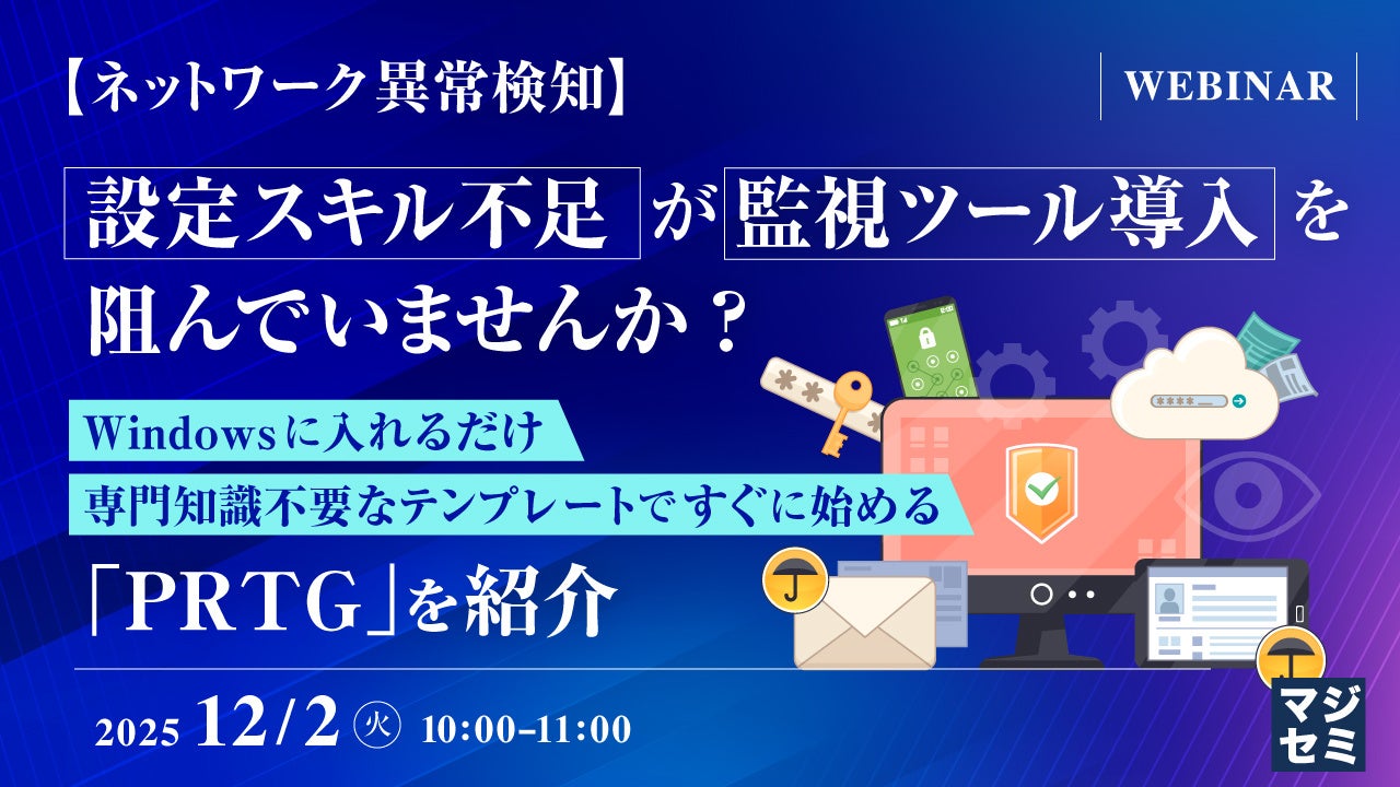 マジセミ株式会社は「【ネットワーク異常検知】設定スキル不足が監視ツール導入を阻んでいませんか?」というテーマのウェビナーを開催します。