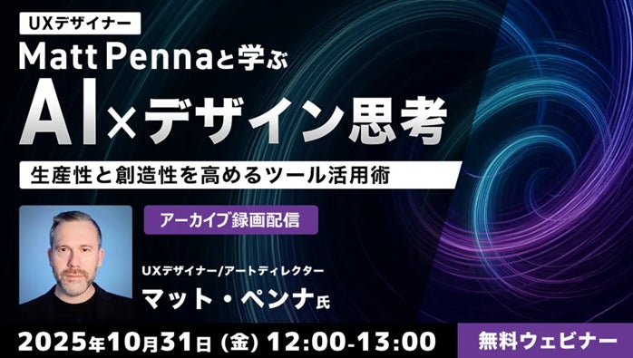 ▼10/25(土)開催:UXデザイナーMatt Pennaと学ぶ AI×UXデザイン最前線 ~創造性と分析力を高める“相棒”としてのAI活用術~