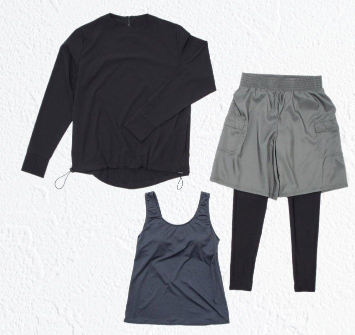 セット内容:プルオーバー・ブラタンク・レギンス付ハーフパンツ
