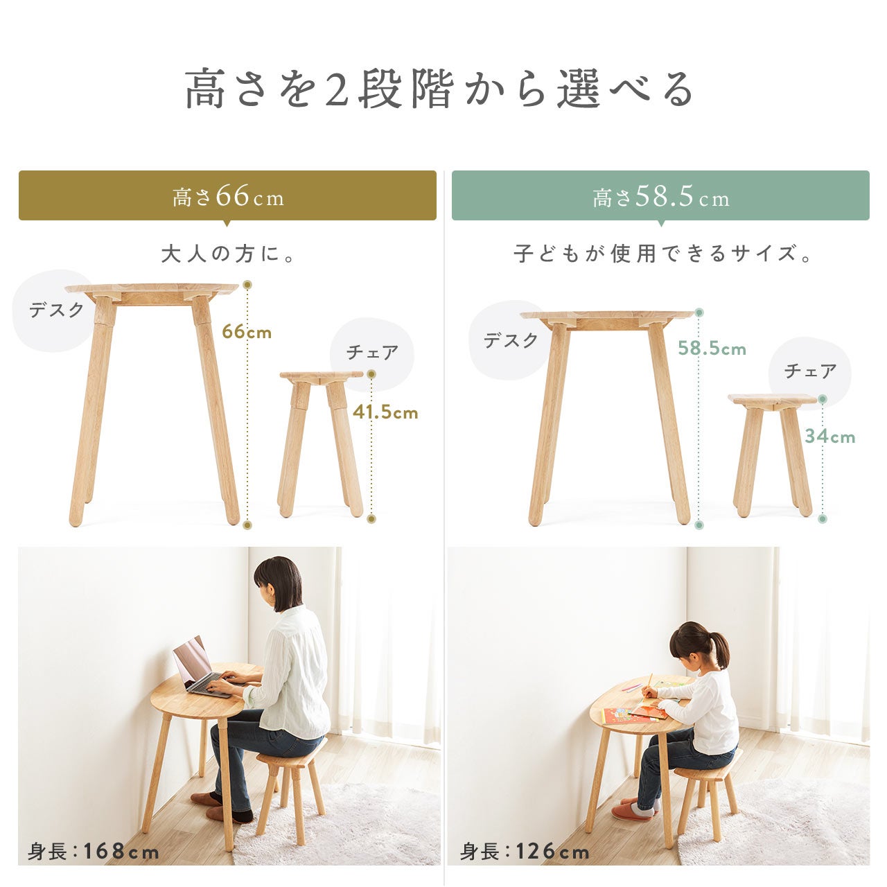 デスク、椅子それぞれ高さを2段階から選ぶことができ、ジョイントパーツで高さ調整が可能です。