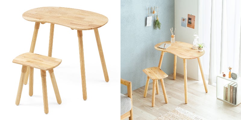 温もりのある天然木を使用!カーブ形状でしっくりなじむ天然木デスク+椅子セットを発売