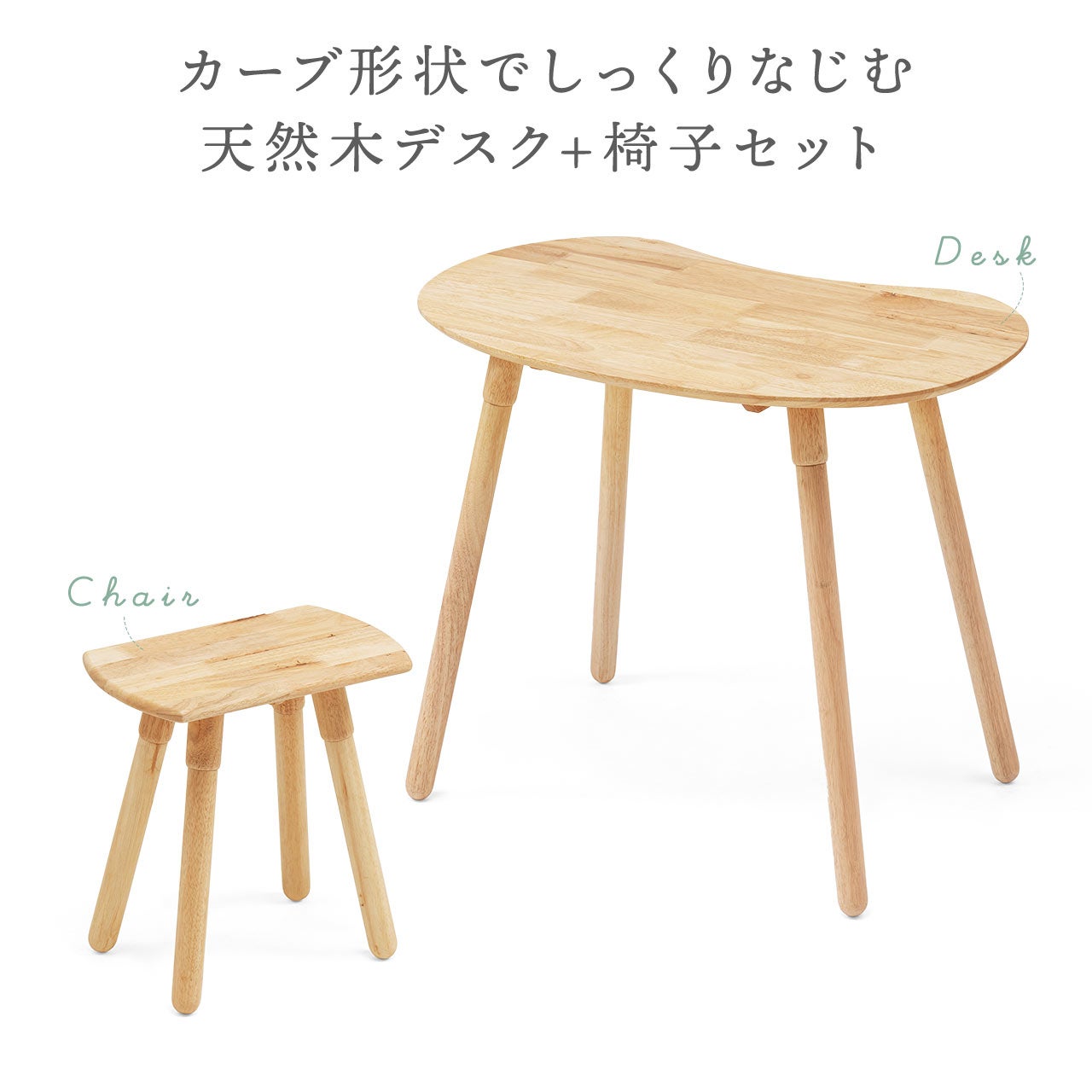 本製品は、カーブ形状でしっくり馴染む天然木デスクと椅子セットです。