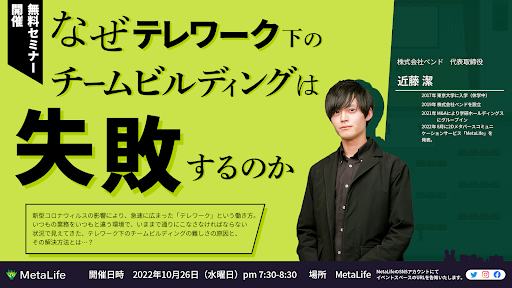 【10/26(水)】無料セミナー「なぜテレワーク下のチームビルディングは失敗するのか」開催のお知らせ【メタバースで開催】