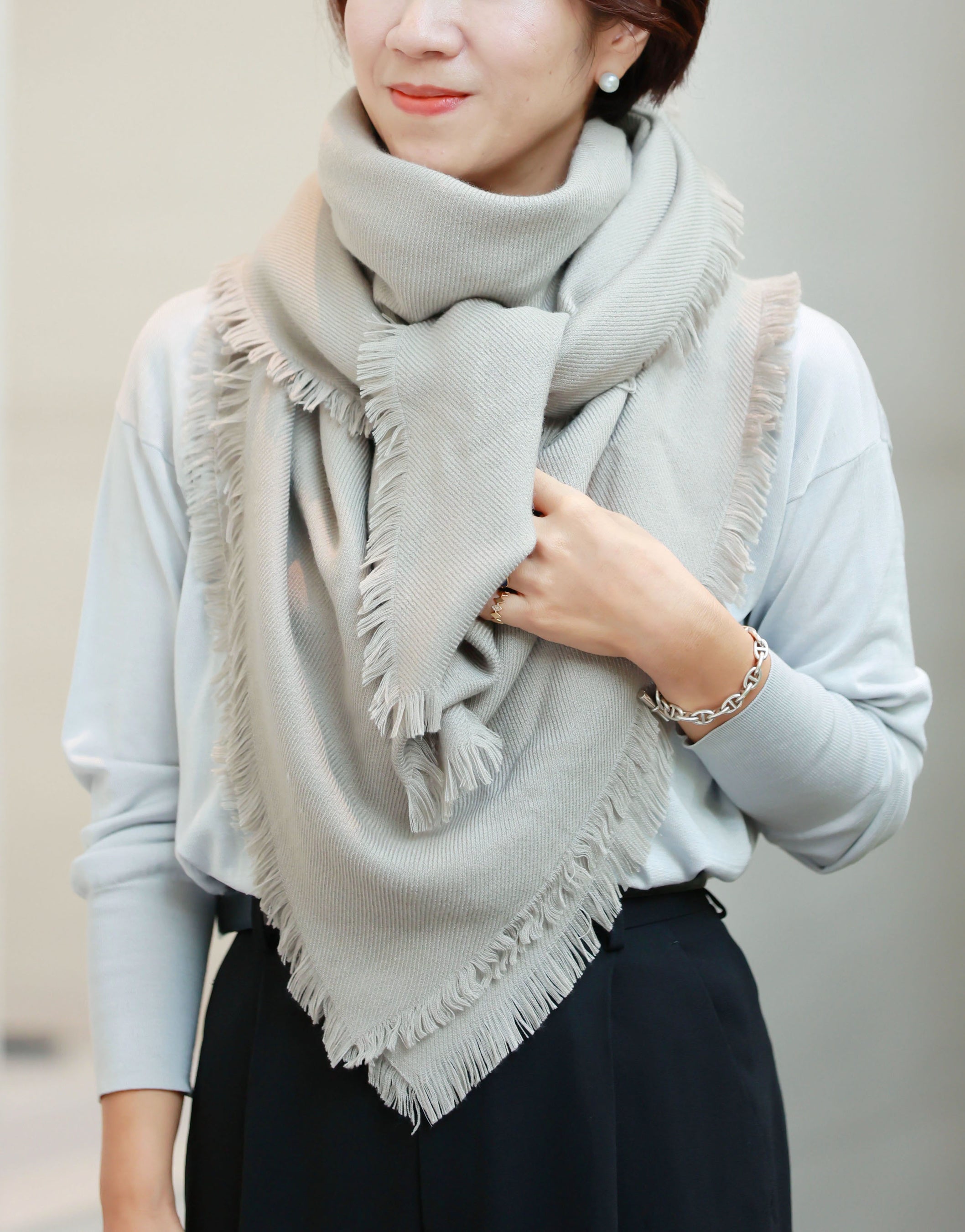 こだわったのは「春、秋、冬の3シーズン使える」軽やかなカシミアシルク入りの素材、「誰でも簡単に巻ける」形・サイズ・デザイン、そして服を選ばない「大人のためのグレージュカラー」。ストール初心者から、おしゃれ上級者までを満足させる、ありそうでなかった最高のストールが実現しました。