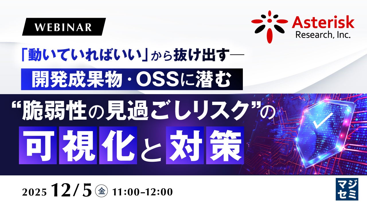 マジセミ株式会社は「「動いていればいい」から抜け出す──開発成果物・OSSに潜む“脆弱性の見過ごしリスク”の可視化と対策」というテーマのウェビナーを開催します。